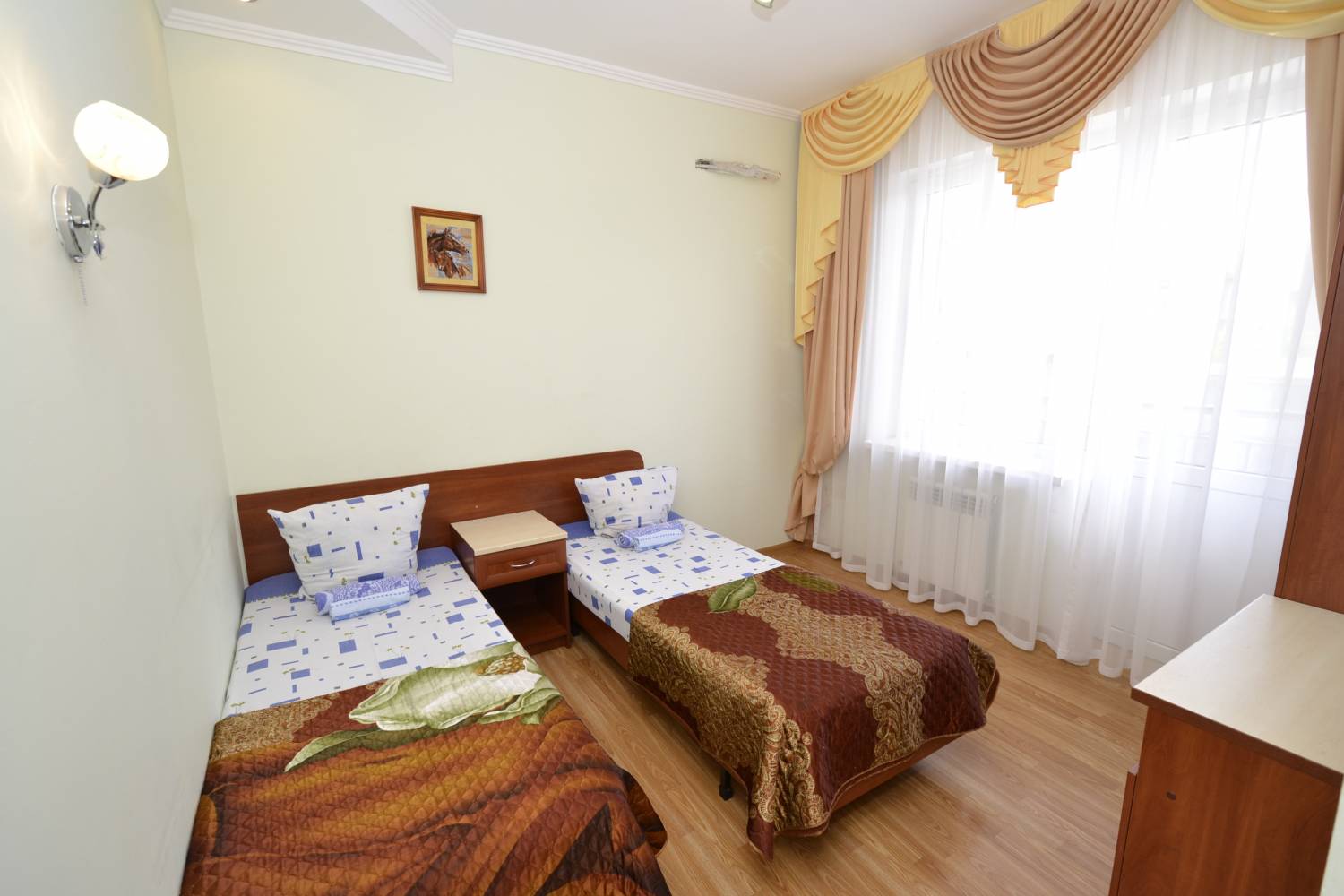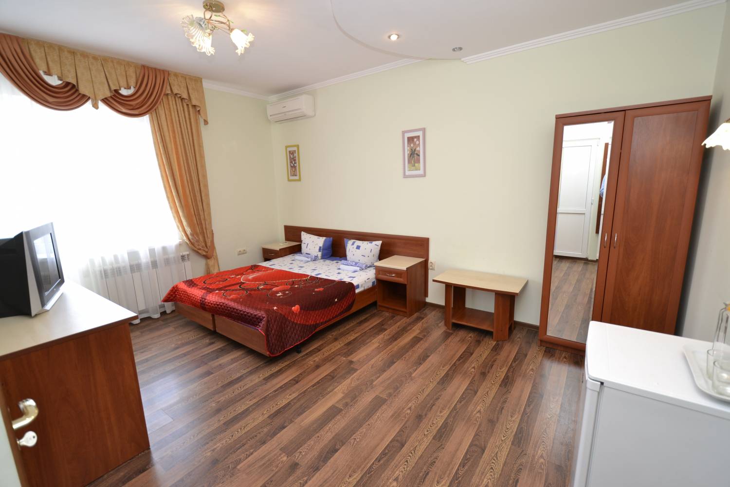 В номере: Балкон, Кондиционер, телевизор, бесплатный Wi-Fi, холодильник, чайник, постельное белье, вешалка для одежды, отопление.